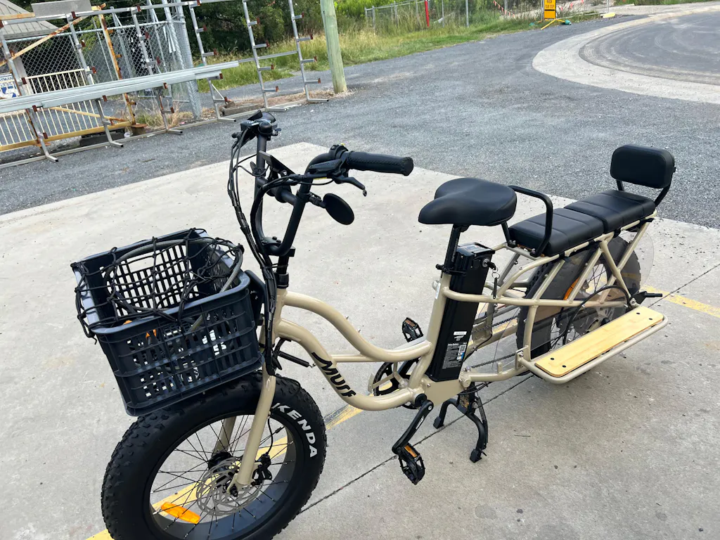 2 passengers can fit comfortably on the back of the bike as long as the combined rider weight does not exceed 200kgs. You can also decide to configure your Higgs Cargo to carry one passenger, two passengers or a rear basket or crate.
