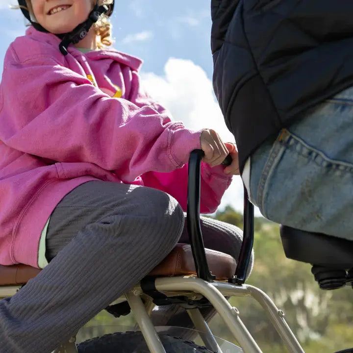 This support bar attaches to your Alpha Cargo and Higgs Cargo rear platform to give riders a set of bars to hold onto. Please note that this only works with the Alpha Cargo and Higgs Cargo models.